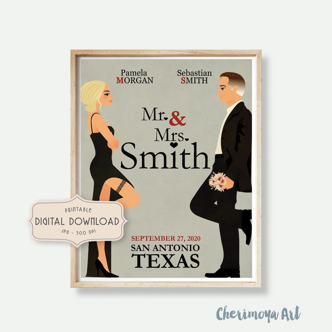 Source : in.pinterest.comMr & Mrs Smith Wedding Poster Unique Wedding Gift Couple Portrait