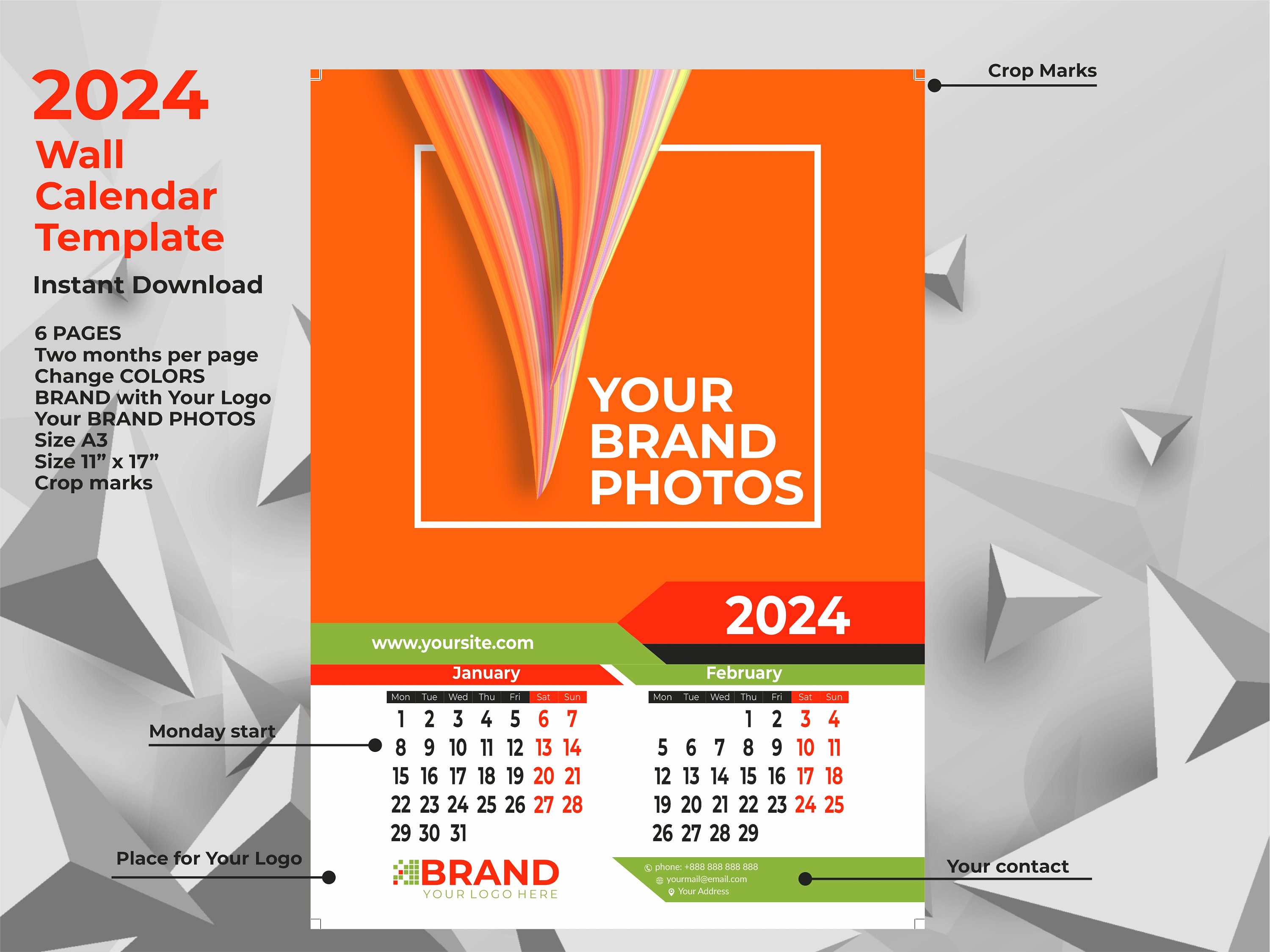 Wall Calendar Design 2024 Free PSD โ€“ GraphicsFamily